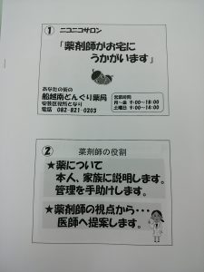 2月14日(火)・2月16日(木) 船越南地区(北・南 鴻治地区)シニアの集まりニコニコサロンに参加し、薬剤師がお話しさせて頂きました。