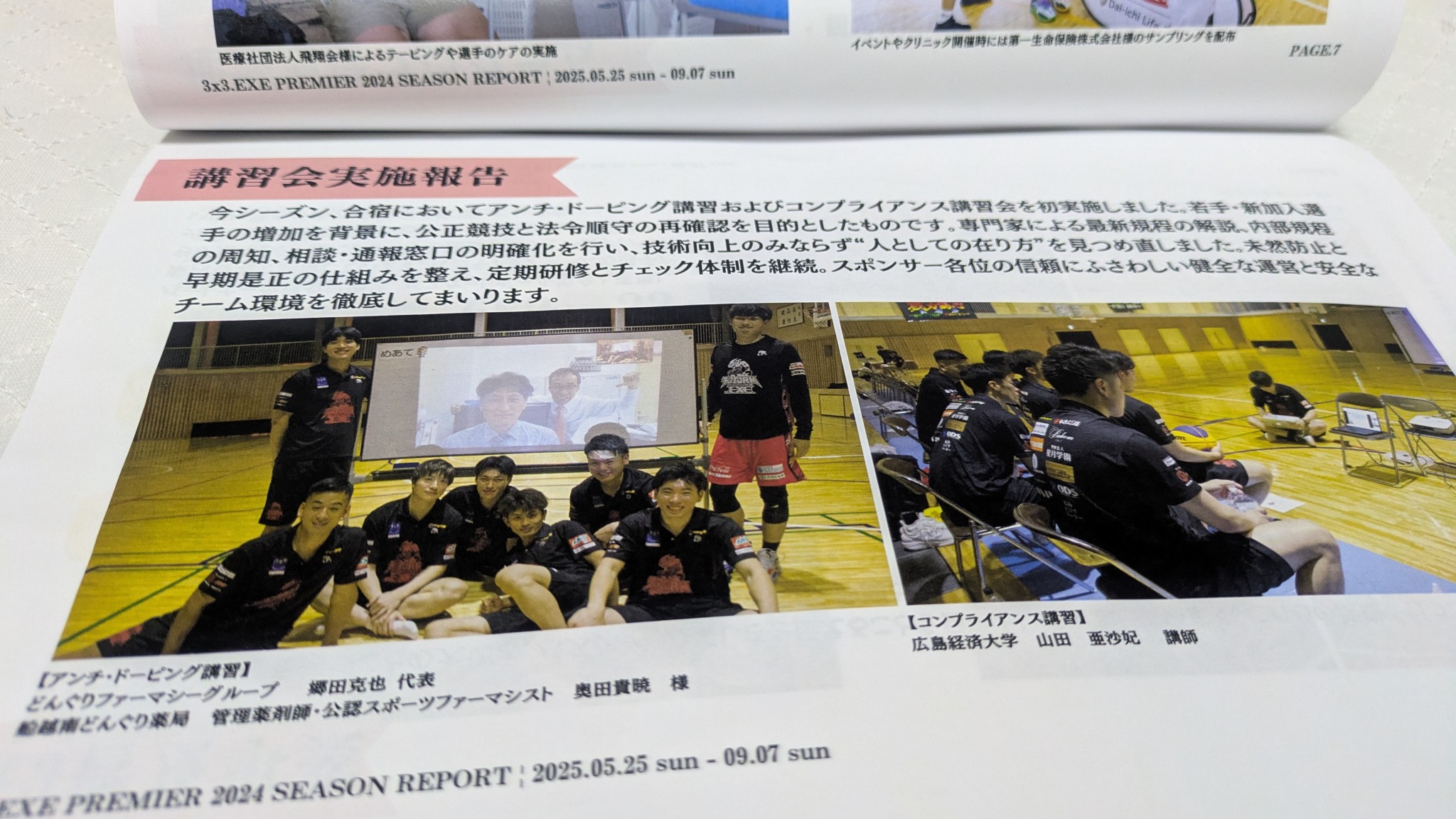 仲摩代表によるシーズン活動報告の中で、当社薬剤師奥田による講習会の紹介をしていただき、会場で披露していただきました。