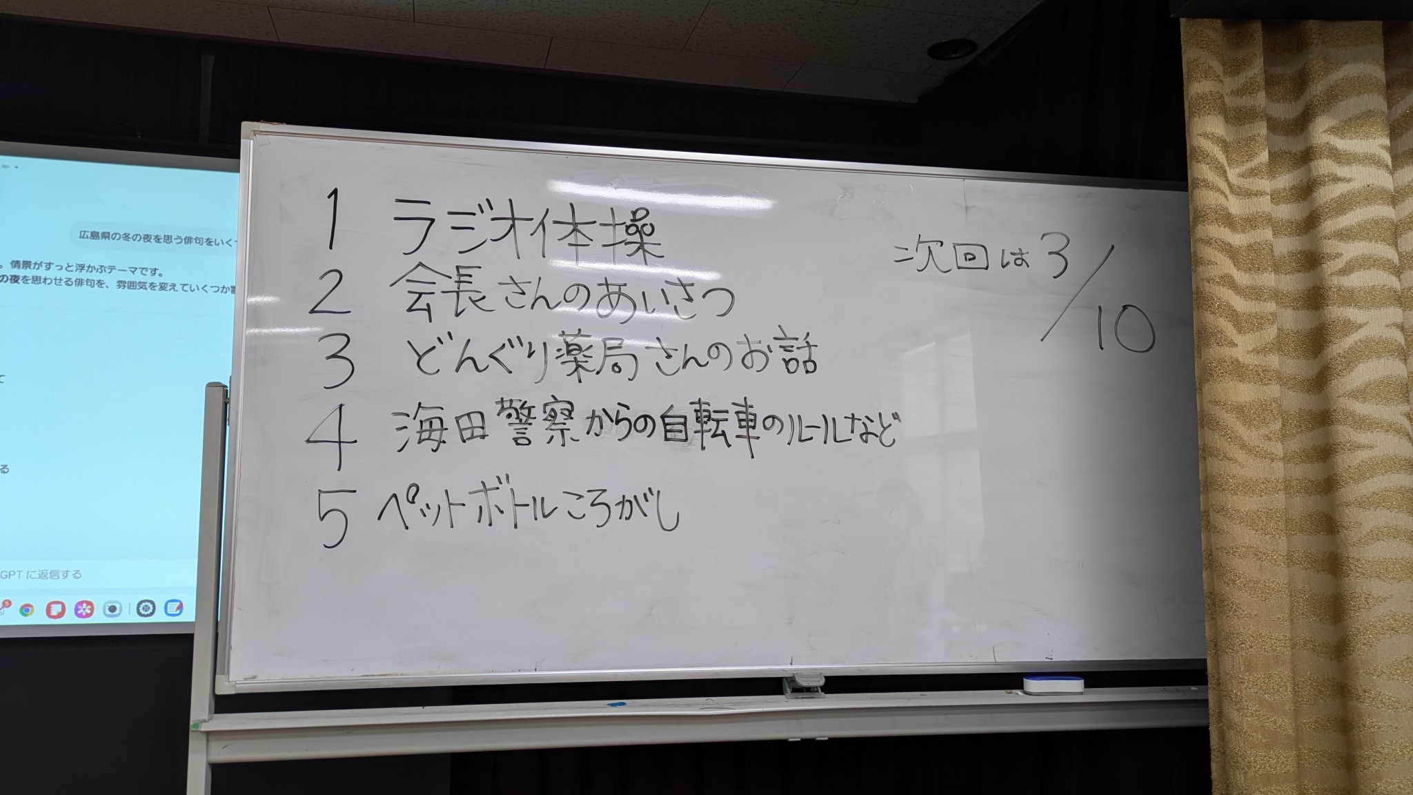 2月10日(火) 安芸区船越南(鴻治地区)シニアの集まりニコニコサロンに参加しました。